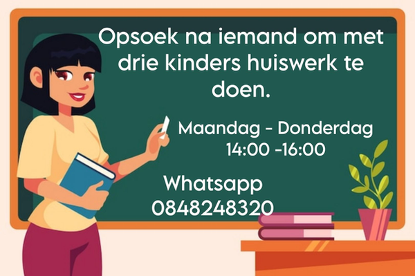 Opsoek na iemand om met 3 kinders huiswerk te doen