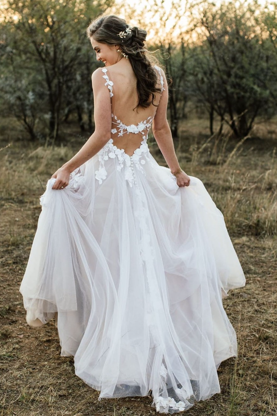 Robyn Roberts bied 'n reeks van vloeiende, romantiese rokke wat perfek is vir die bruid op soek na iets gemaklik maar tog stylvol. Haar ontwerpe fokus op sagte lyne en vroulike detail, wat 'n droomagtige en eteriese voorkoms skep. Robyn se rokke is ideaal vir 'n buitelug troue of 'n meer ontspanne seremonie. Rokke begin by ongeveer R12,000 en kan oploop na R25,000 vir meer persoonlike ontwerpe.