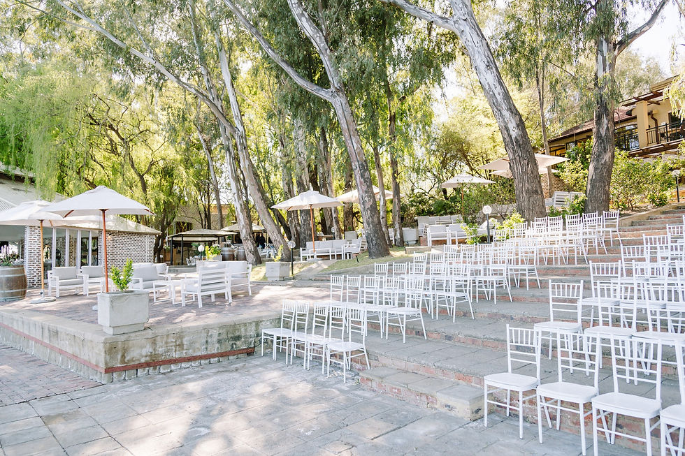 Le Pont is nie jou gewone trouvenue nie. Hierdie oop en lugtige plek is reg op die water se rand met 'n 180 grade uitsig oor die rivier. Stel jou voor hoe jy jou trougeloftes aflê met die sagte geluid van kabbelende water in die agtergrond. En vir die bruid, LA GALLERIE, wat dien as die ideale bruidskamer, kompleet met 'n privaat buiteruimte wat uitkyk oor Les Terrasses.
