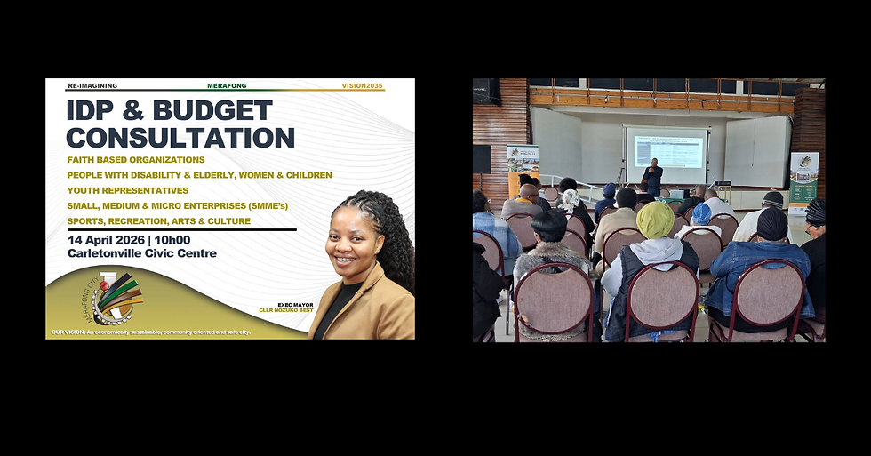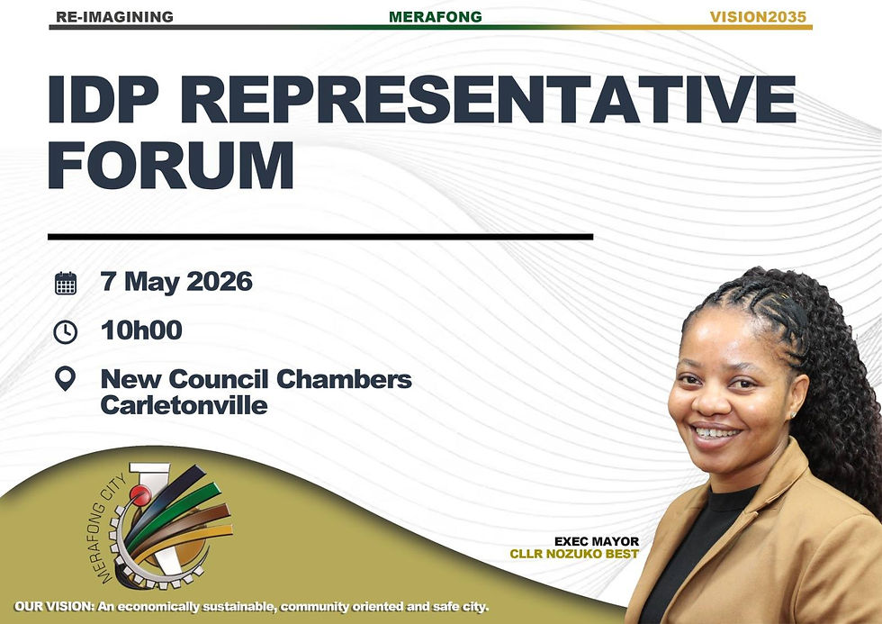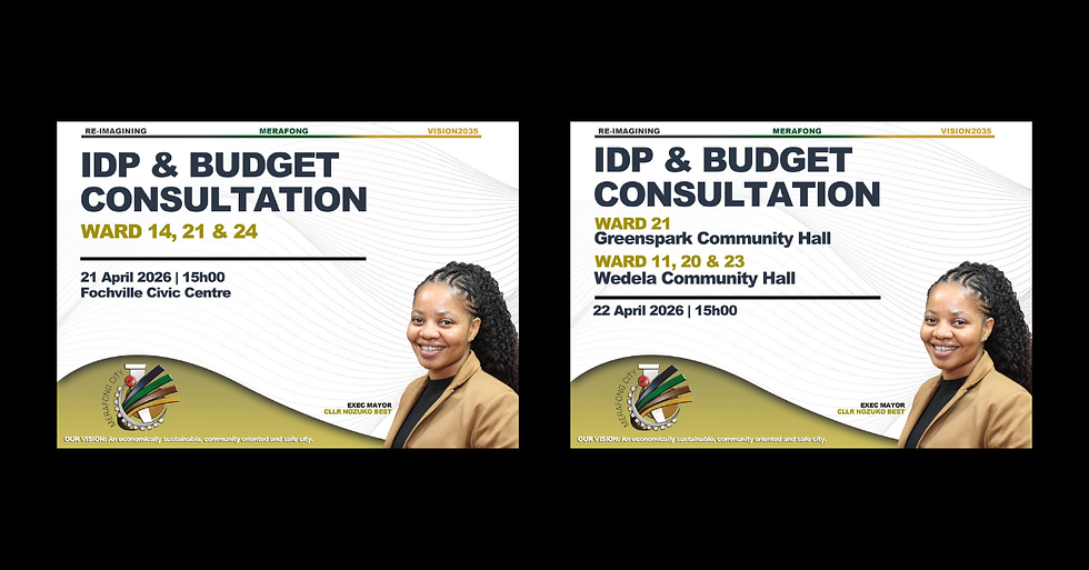 The Merafong City Local Municipality has officially entered a critical phase of its strategic planning, launching a series of Integrated Development Plan (IDP) and Budget consultations. Led by Executive Mayor, Cllr Nozuko Best, the initiative aims to align municipal spending and developmental goals with the immediate needs of the community under the banner of "Re-Imagining Merafong: Vision 2035."